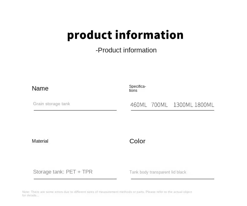 Fremstillet af PET af høj kvalitet + PE-materiale, denne beholder er miljøvenlig, holdbar og fugttæt, at sikre langvarig friskhed. gennemsigtigt organ giver mulighed for let synlighed af indholdet, mens lufttæt låg giver sikker forsegling for at forhindre spild og fugt.