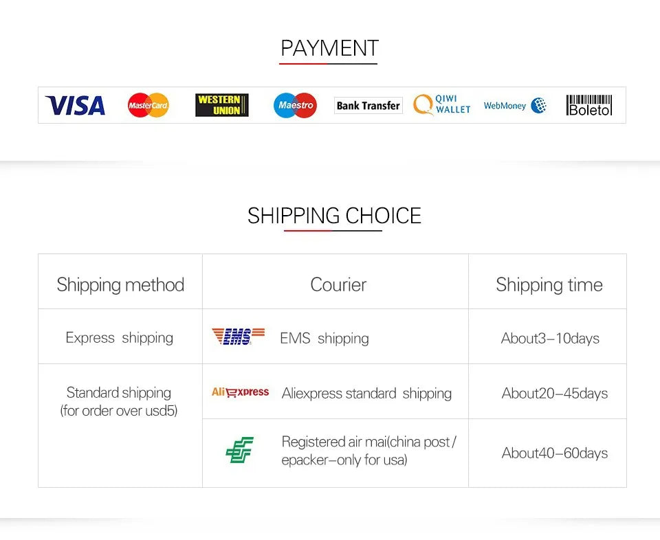 shipping company(China Post Air Mail,ePacket,Aliexpress Standard Shipping etc) du vælger,